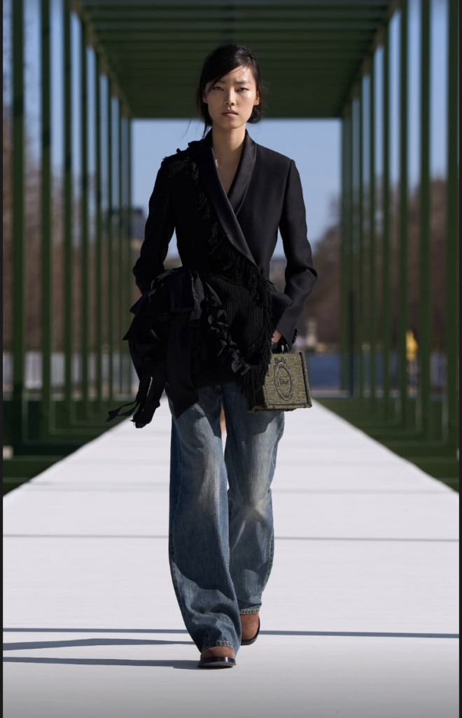 This was especially evident at Dior, where classic silk-lapel jackets were paired with denim and satin shoes. It feels like a breath of fresh air, giving new life to eveningwear and creating more opportunities to wear it beyond traditional settings.